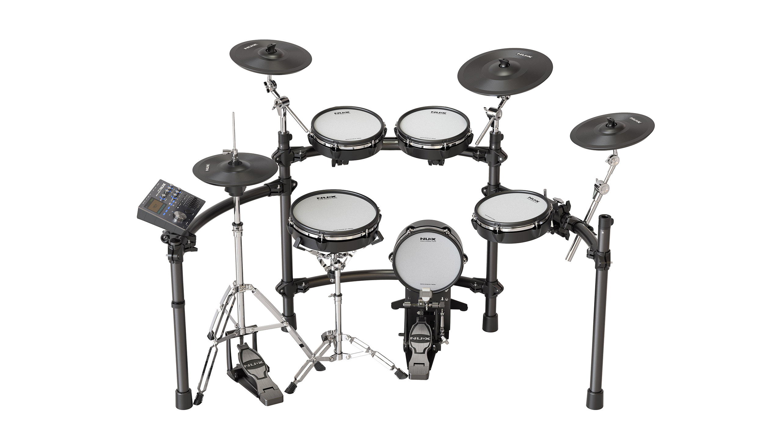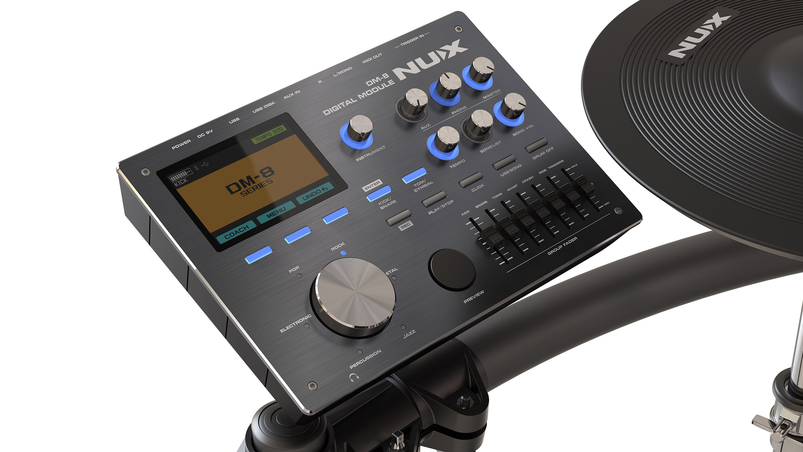 The NUX DM-8 is our newest drum kit featuring new innovative technologies, giving drummers an authentic acoustic-like feel and realistic expressive playing. The DM-8 features a robust rack system which is not only durable but looks great when you’re rocking out! Keep reading to learn about all the exciting new features!
