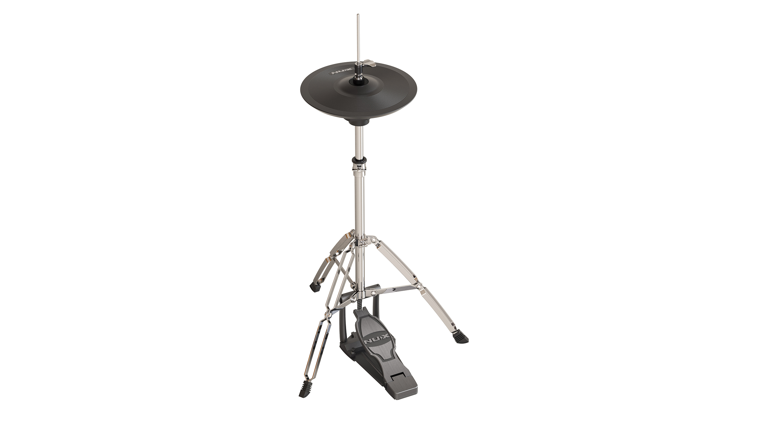 The hi-hat is mounted on its own hat stand, providing a more realistic feel as opposed to a fixed pad. Mounted onto a motion sensor unit, the hat can be easily adjusted to your playing style, including Open/Closed and Half Open hats.