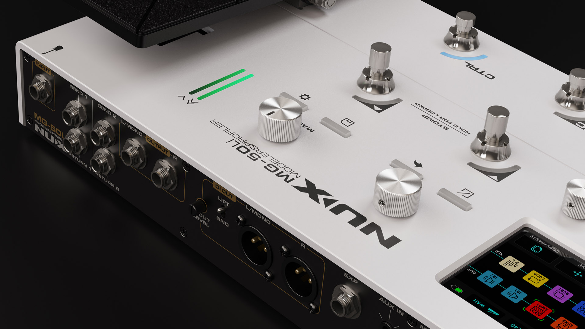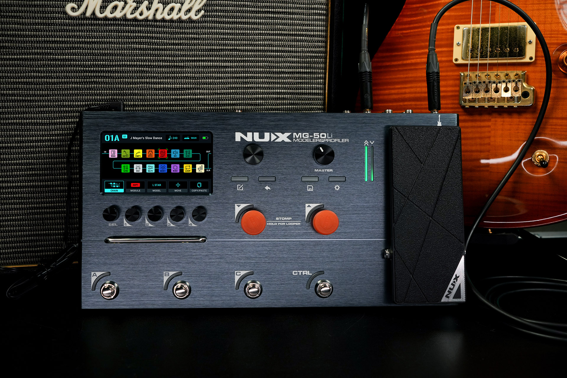 Patches can be edited directly from the front panel or through the NUX Audio app on your phone or computer for customization. Equipped with a high-definition color LCD display that stays readable even in bright daylight, the MG-50Li provides you with everything you need to dial in your sound and perform with confidence.