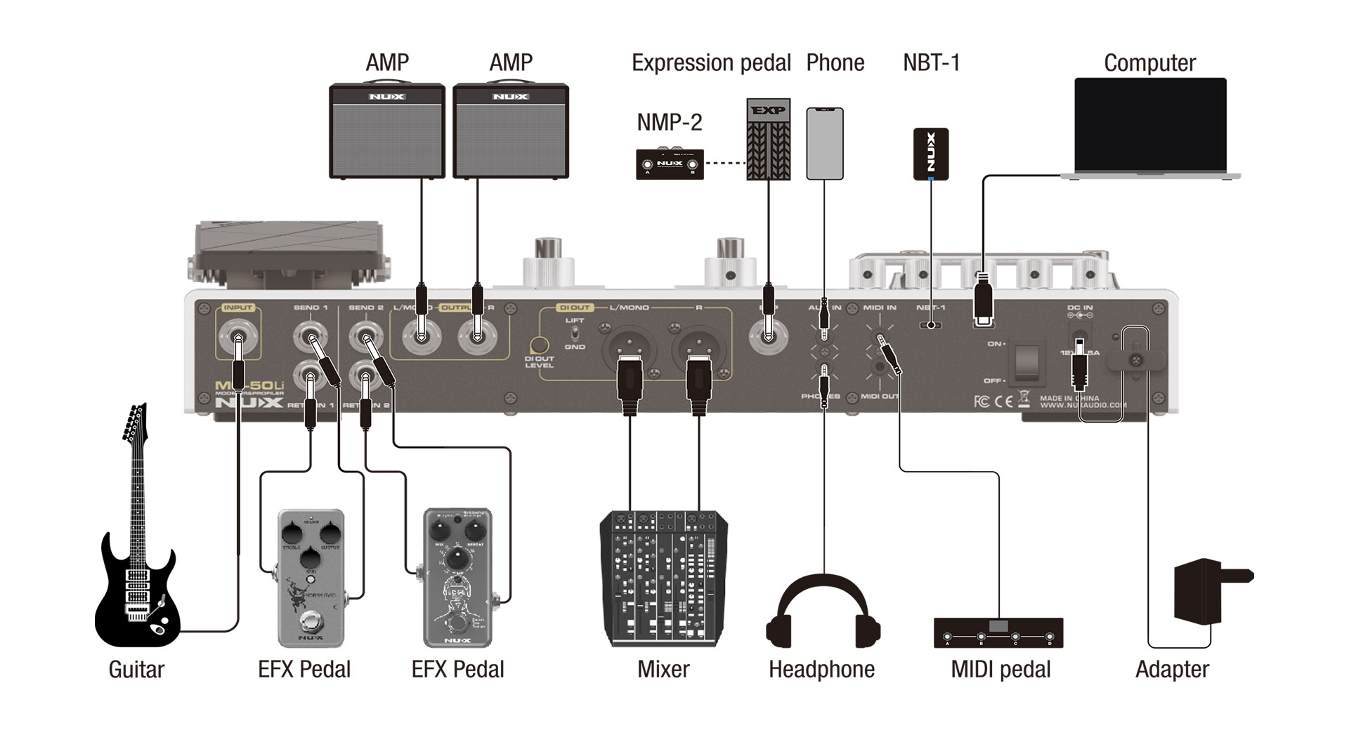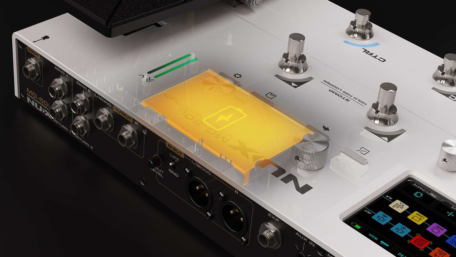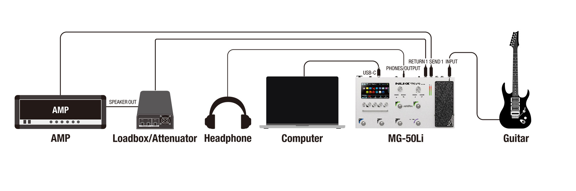 The MG-50Li is the NUX family’s flagship multi-effects processor for guitar and bass, built around two core technologies: TS/AC-4K white-box physical modeling amps and DeepImage profiling amp models. Players everywhere can enjoy using the MG-50Li thanks to its streamlined design, free-flowing interface, and high-quality tones.