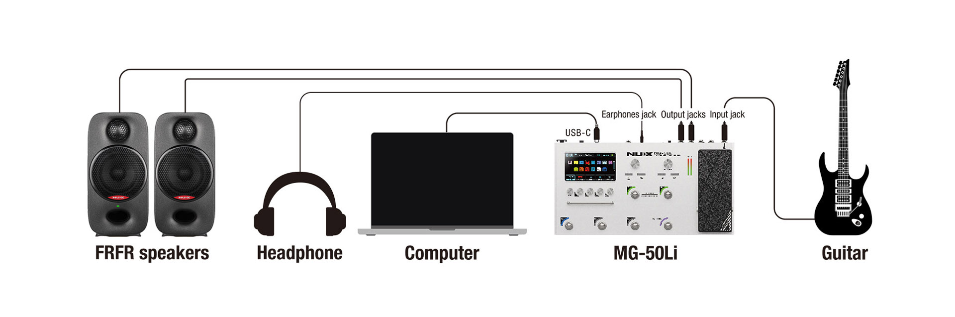 As laptops continue to include fewer USB ports, users often rely on USB hubs or adapters, which can disrupt the plug-and-play experience and potentially cause conflicts. The MG-50Li also serves as a USB audio interface, minimizing setup time and freeing up space, allowing you to focus more on playing and creativity.