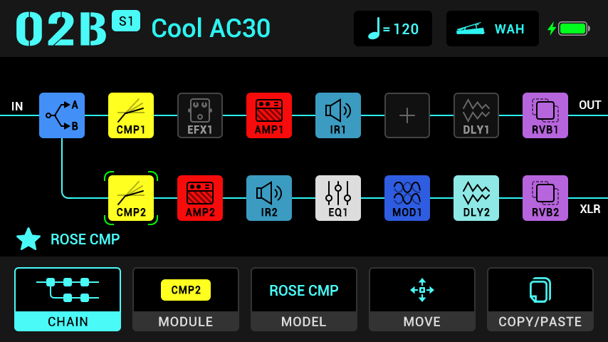 Parallel/Serial effect chain with 14 effect blocks