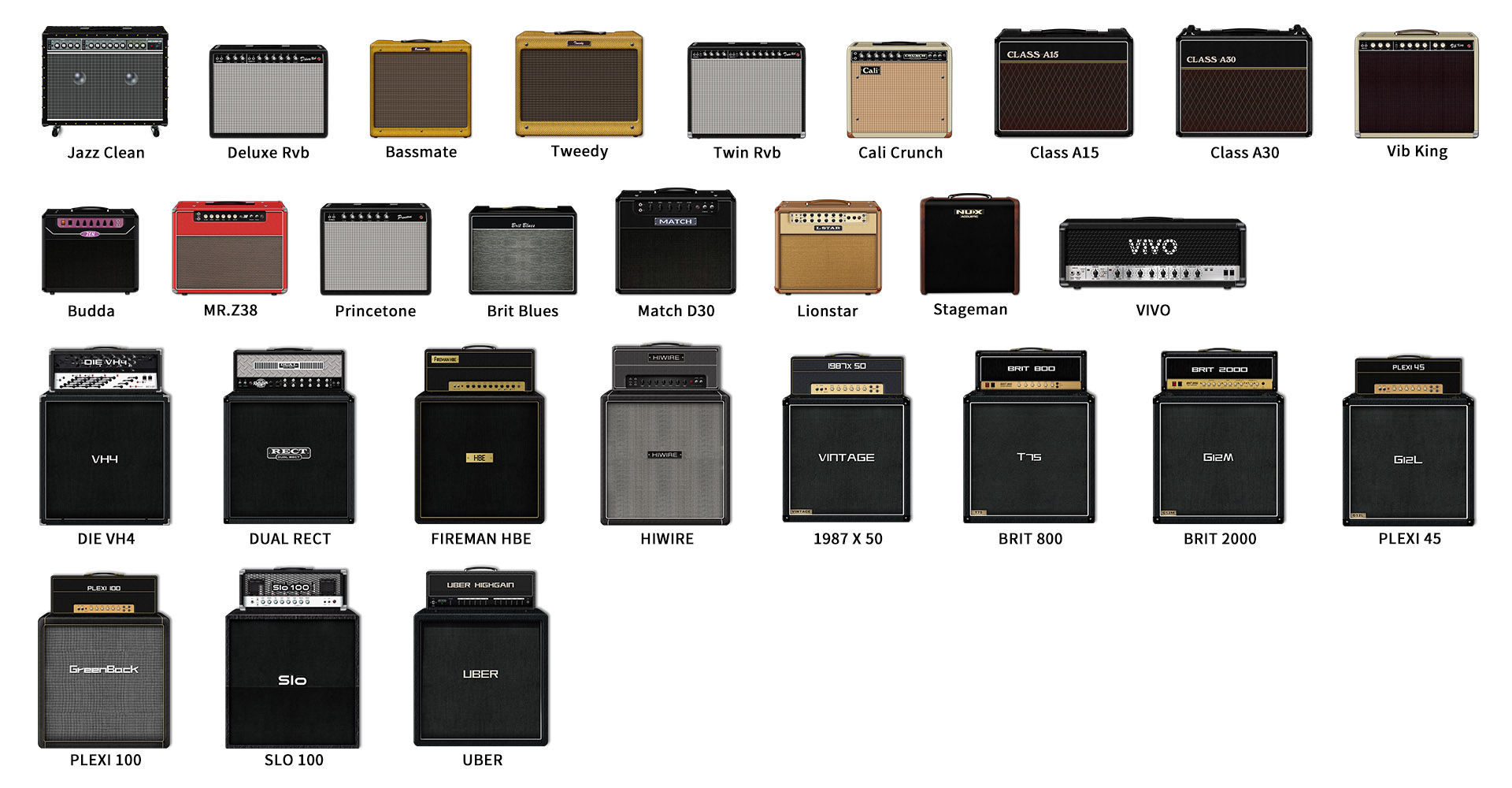 – Amps: 28 White-box Modeling Amps, 30 DeepImage Amps, 30 User Amps