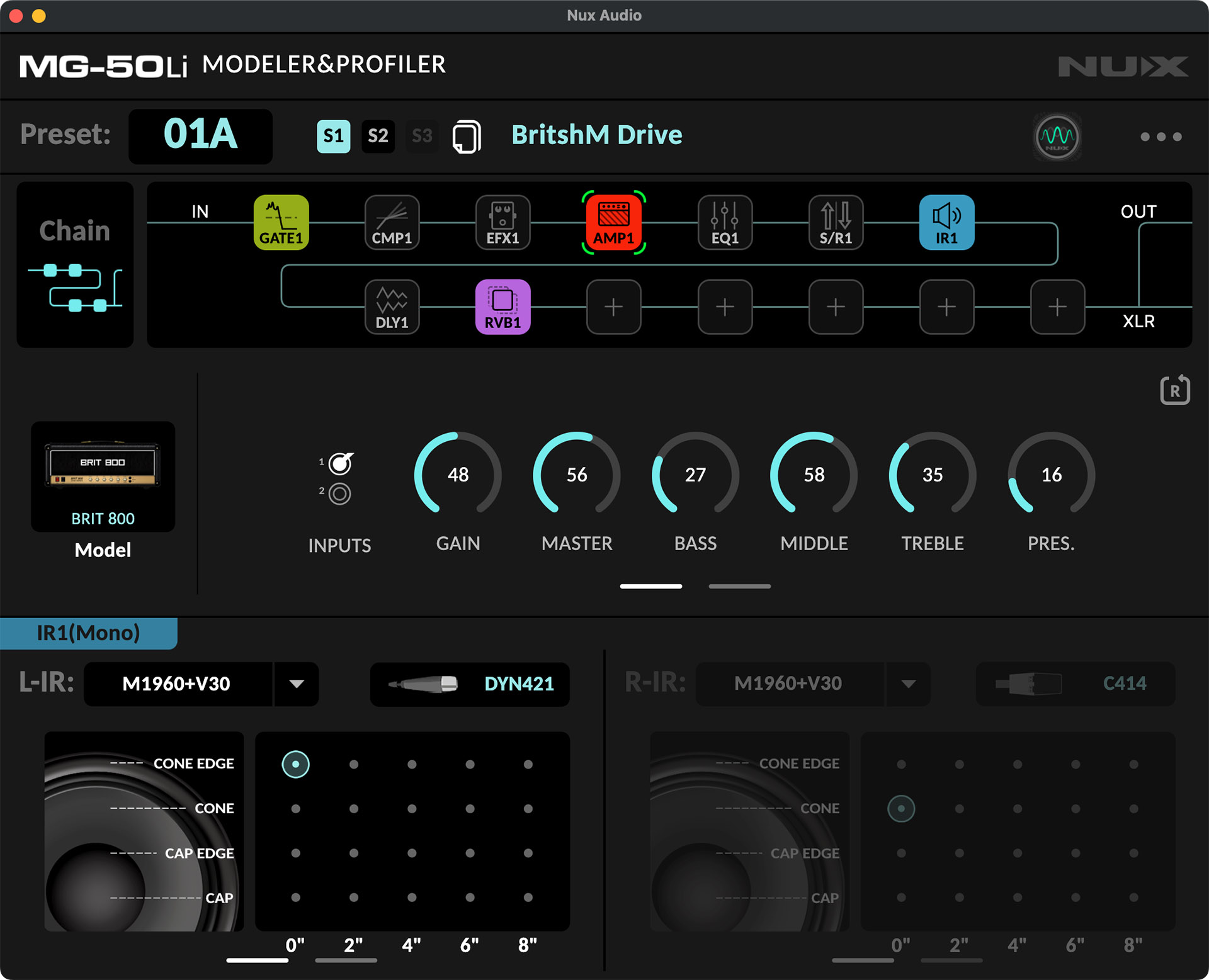 The MG-50Li features Cyber IR™ Technology — a true impulse response reproduction with an advanced algorithm that supports Microphone, Position, and Distance adjustments, providing stereo IR capabilities with ultra-low latency.